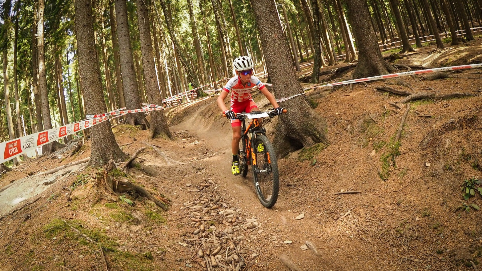 V neděli dopoledne se jely dětské závody Mistrovství ČT: D Junior Trophy a Junior Trophy Downhill. Trasy Junior Trophy vedly na uzavřeném okruhu lesními pasážemi s využitím XC přírodních překážek. Okruh měřil pro nejstarší kategorie cca 1200 m a v porovnání s letošní trasou ČP Minime byl o dost náročnější, nejen po fyzické stránce, ale i po té technické. Nechyběl táhlý kopec po šotolině, přísný kořenitý výšlap, technická pasáž ze svěťáku ACDC ani flow-trailový sjezd s několika klopenkami. Konkurence na startu všech kategorií byla také poměrně silná, minimálně v prvních 2 lajnách byla spousta dětí jezdících pravidelně ČP.